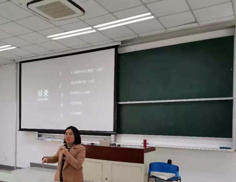 易如带领同学们探讨马克思主义唯物史观下的“人民观”,她从十九届四中全会里的“人民”、历史语境下的“人民”、马克思主义“人民观”三个方面阐释了“人民”的特征和“人民”的建构,体现人民在国家发展中的强大作用。