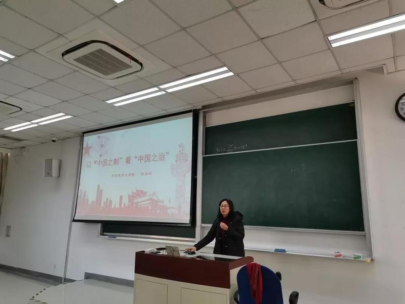 上海市十九届四中全会精神宣讲团成员杜仕菊就“从‘中国之制’看‘中国之治’”展开宣讲,她要求同学们要充分认识坚持和完善中国特色社会主义制度、推进国家治理体系和治理能力现代化的重大意义,明确总体要求、总体目标和重点任务,深入解读中国特色社会主义的制度优势。