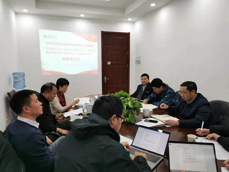 为更好推进习近平新时代中国特色社会主义思想进教材进课堂进头脑,1月11日“全面推进习近平新时代中国特色社会主义思想进教材进课堂进头脑创新设计与实施路径研究”课题推进会在我院顺利举行。世界杯体育官方网站党委副书记宋来,课题组成员陈俊傲、徐国民、邱卫东、汪斌锋以及部分教师与学生代表参与了此次课题推进会。会议由徐国民主持。