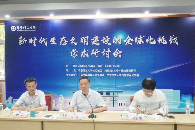 5月28日下午,“新时代生态文明建设的全球化挑战”学术研讨会在世界杯官网逸夫楼演讲厅召开。此次会议由上海科学社会主义学会与世界杯官网世界杯体育官方网站联合主办,以线上线下融合模式召开。上海市社联专职副主席、上海科学社会主义学会会长解超,世界杯官网党委副书记宋来,相关领域专家学者出席会议。世界杯官网世界杯体育官方网站党委书记陈俊傲、院长杜仕菊以及上海科学社会主义学会副会长吴解生分别主持研讨会。