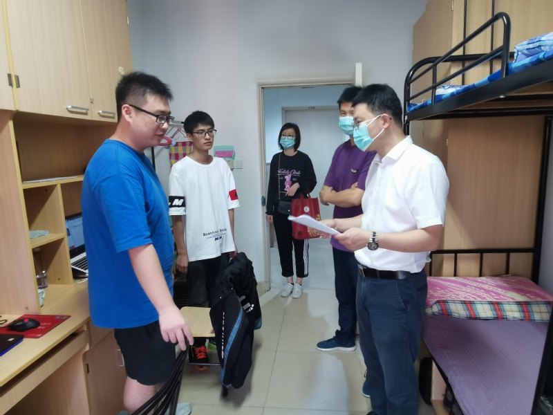 下午,学院党委书记陈俊傲、副院长汪斌锋、党委专职组织员于滢、辅导员张丽华一同前往研究生宿舍楼,慰问2020级研究生新生。在新生寝室,老师们亲切地询问同学们的基本情况,勉励他们尽快熟悉适应新环境,完成角色转变,积极参加学校组织的各项活动。