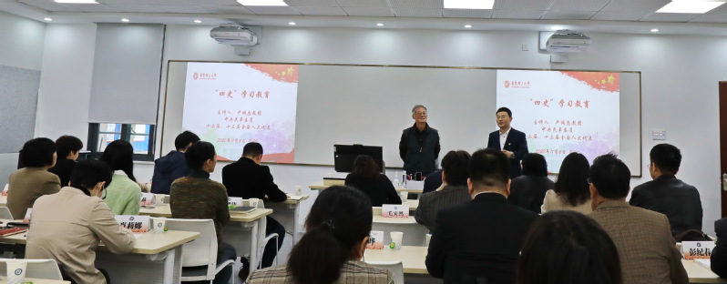11月6日上午,世界杯体育官方网站诚邀中国国民党革命委员会党员,第十一、十二届全国人民代表大会代表,第十一届上海市政协常委、委员严诚忠教授为全院教师带来了一场别开生面的“四史”主题教育讲座。学院党委书记陈俊傲、院长杜仕菊、副院长徐国民、邱卫东、汪斌锋以及全体教师参加会议,会议由陈俊傲主持。