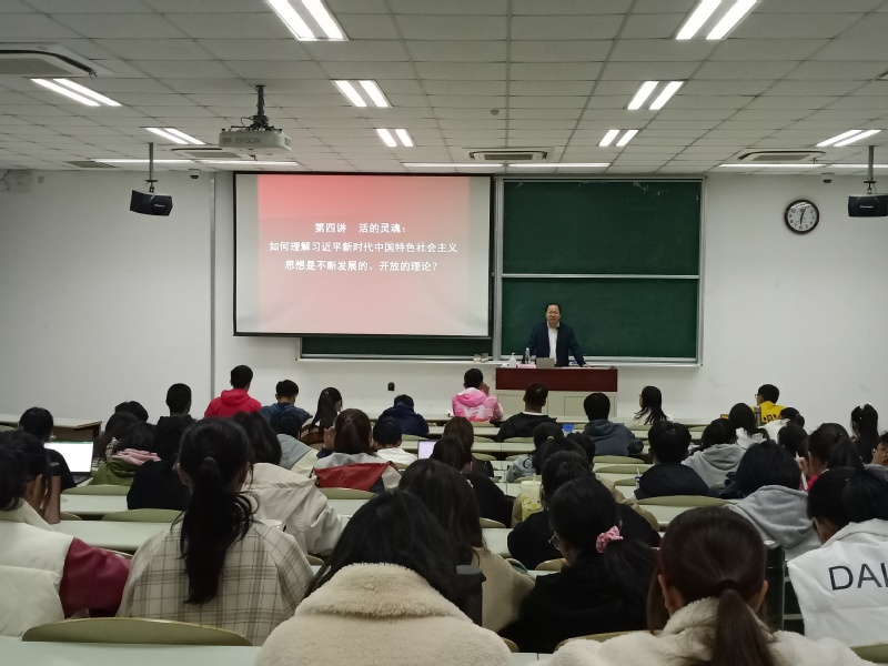 11月4日,世界杯官网新思想概论课在奉贤校区A教202室举行第四讲,本讲由世界杯体育官方网站副院长徐国民担任主讲人,近两百名学生参与聆听。