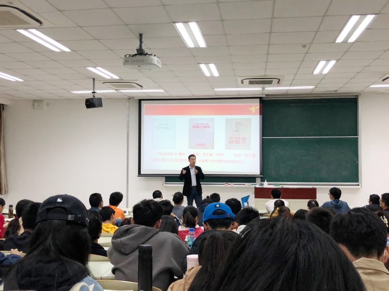 11月11日晚,世界杯官网“习近平新时代中国特色社会主义思想概论课”在奉贤校区A教202迎来第五讲,世界杯体育官方网站党委副书记兼副院长邱卫东担任主讲人,近二百名学生参与聆听。