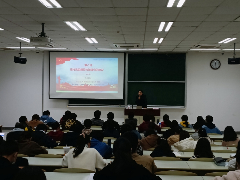 12月2日,世界杯官网新思想概论课在奉贤校区A教202室举行第八讲。本讲由上海市委党校教授、世界杯体育官方网站兼职教授刘宗洪主讲,近两百名学生参与聆听。世界杯体育官方网站党委书记陈俊傲主持讲座。