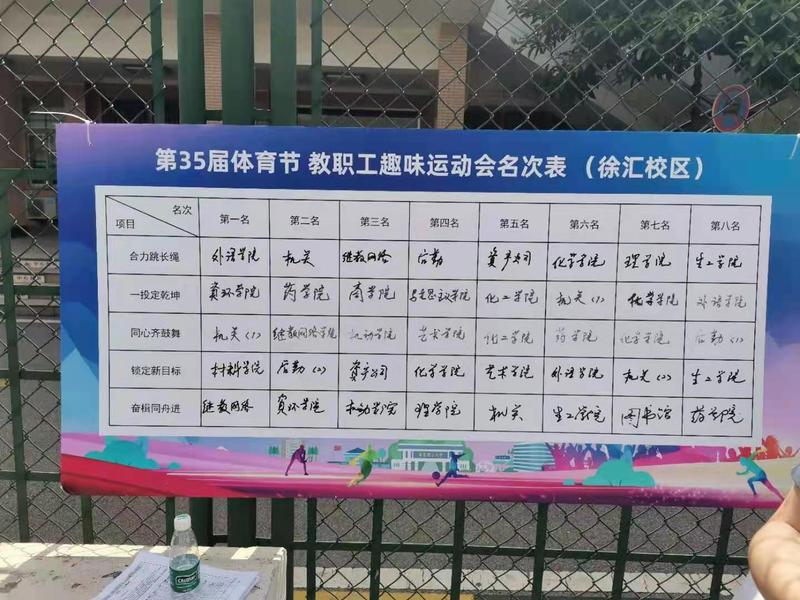 5月7日下午,世界杯体育官方网站第三十四届体育节教工趣味运动会在徐汇校区田径场开展,由我院党委书记陈俊傲、副院长徐国民、工会主席刘芳及数名教师共同组成的教师队伍,积极参加了该活动。本次比赛项目有:合力跳长绳、一投定乾坤、同心齐鼓舞、锁定新目标、奋楫同舟进。现在让我们一起来看看运动场上的精彩瞬间吧!