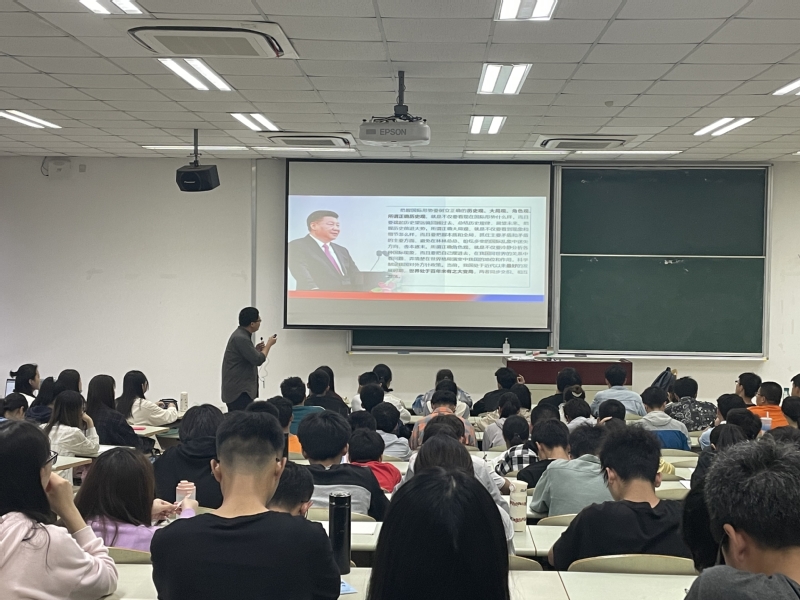 5月19日晚,“百年大变局中的世界与中国”——习近平新时代中国特色社会主义思想概论课在世界杯官网奉贤校区A101室举办第十二讲,世界杯体育官方网站青年教师张驰担任主讲人,世界杯体育官方网站党委书记陈俊傲、院长杜仕菊与二百余名学生共同聆听了讲座。