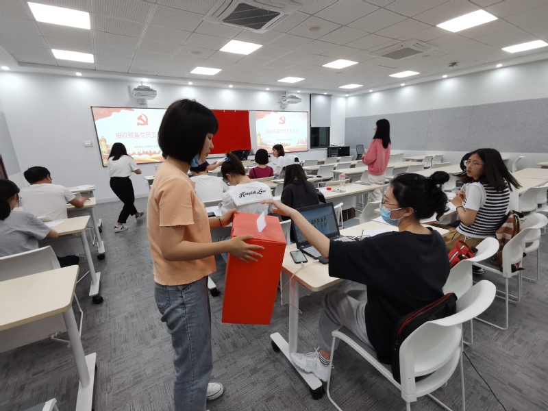会上,发展对象们逐一宣读《入党志愿书》,并向党组织汇报自身对党的认识、入党动机、本人履历以及在校表现等。随后,入党介绍人逐一介绍发展对象的政治思想、学习、工作生活等情况,并对其能否入党表明意见。高苏沛向全体参会党员报告对各发展对象的现实表现的考察情况,与会党员对发展对象是否符合党员条件进行了充分的讨论并发表意见。经与会正式党员投票表决,大会一致同意接收娄芹芹、林中建、孙文秀、石玉姝、时慧林5名同志成为中共预备党员。