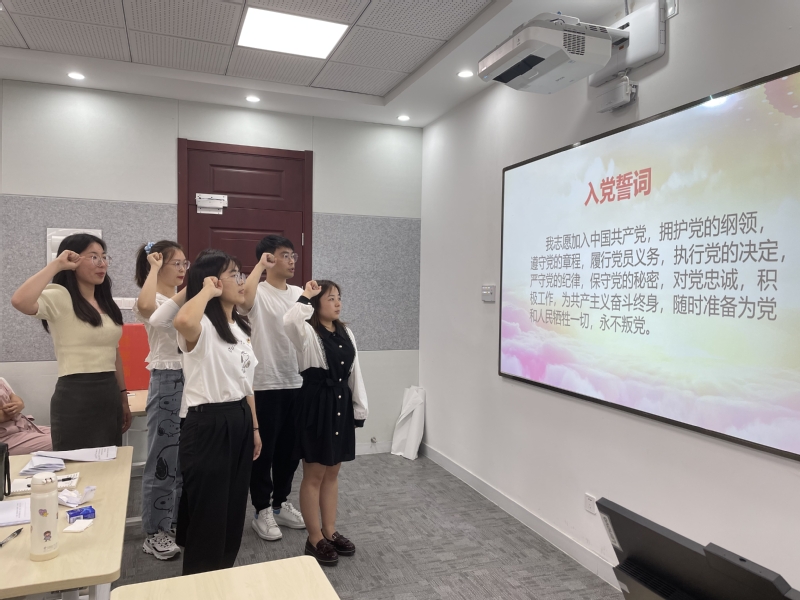 会议最后,5名预备党员在党支部书记高苏沛的带领下,面对党旗进行庄严宣誓。预备党员在大会上向党支部表达了自身的想法与决心,坚定信念跟党走,在今后的学习工作中,严格要求自己,努力改正现有不足,积极向优秀共产党员学习,树立先锋模范作用,争取早日正式加入中国共产党。