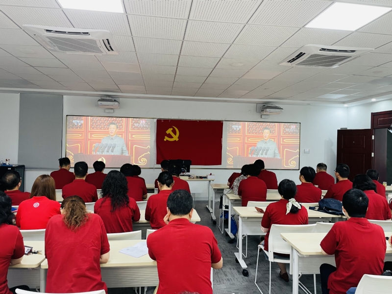庆祝中国共产党成立100周年大会于7月1日上午8时在北京天安门广场隆重举行。中共中央总书记、国家主席、中央军委主席习近平发表重要讲话。为学习领悟习近平总书记重要讲话,庆祝建党100周年,世界杯体育官方网站全体师生于第一教学楼101室观看庆祝中国共产党成立100周年大会直播,共同见证这一庄严隆重的时刻。