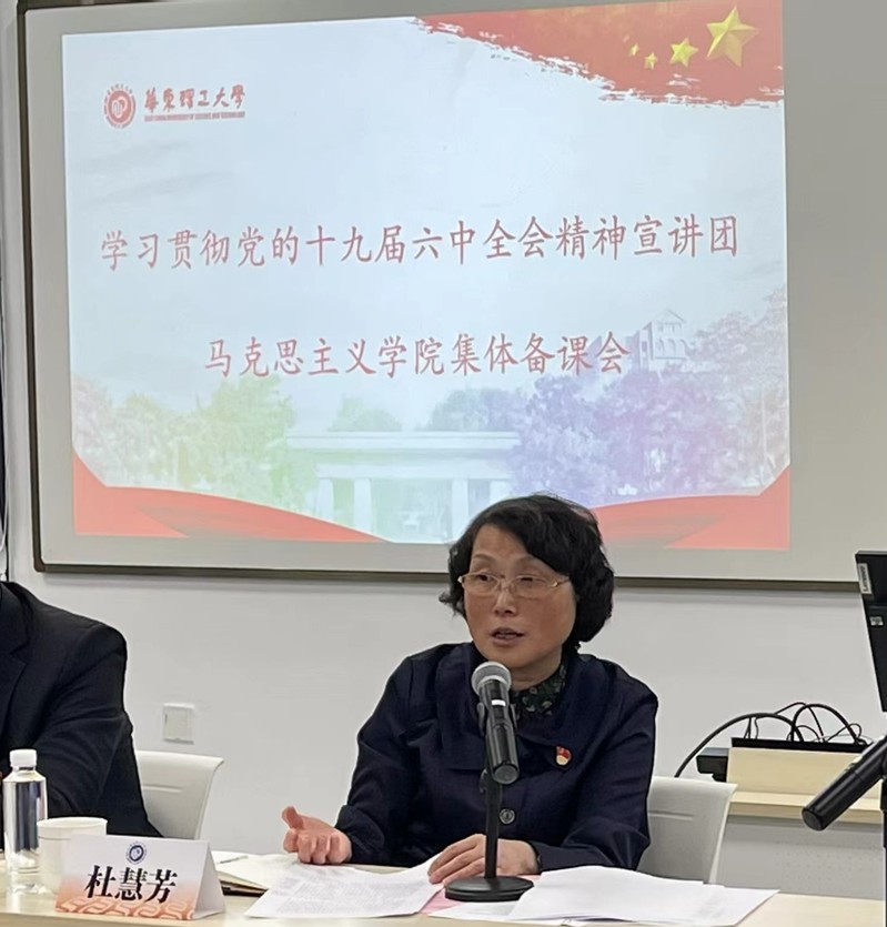 12月3日下午,校党委书记杜慧芳到世界杯体育官方网站调研,并参加学习贯彻党的十九届六中全会精神宣讲团集体备课,校党委书记杜慧芳,党办主任沈海涛,世界杯体育官方网站宣讲团成员、班子成员、党委委员、党支部书记、教研部主任、部分青年教师和研究生等30余人参加了集体备课。上海科学社会主义学会副会长、国防大学教授孙力做辅导报告。会议由世界杯体育官方网站党委书记、院长王爱祥主持。