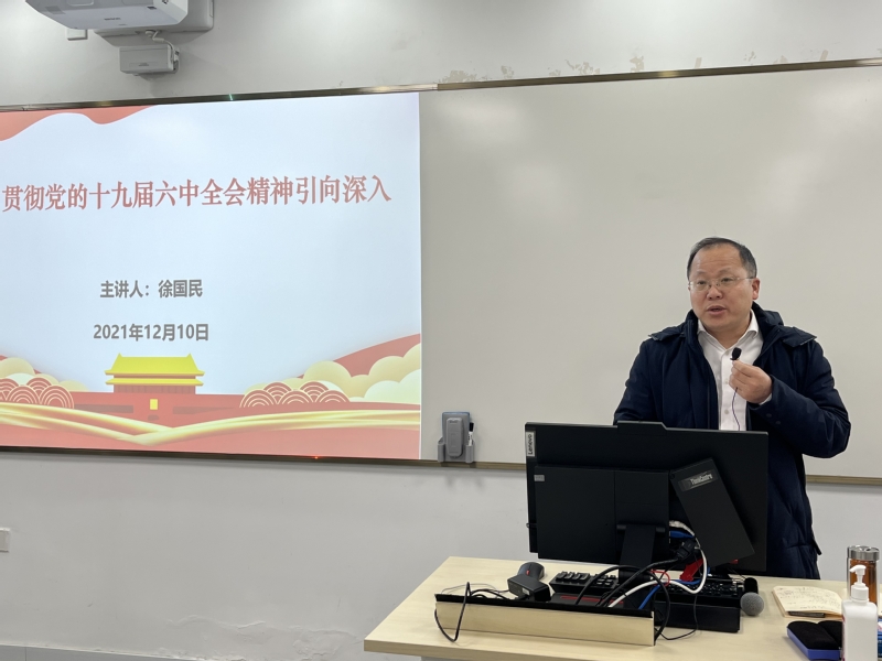 12月10日下午,我院十九届六中全会精神宣讲团第二次集体备课会在一教101室举行。我院副院长、市委宣讲团专家组成员徐国民作“把学习贯彻党的十九届六中全会精神引向深入”主题辅导报告,学院党委书记、院长王爱祥与学院教职工、硕博生三十余人共同学习了报告,党委副书记杨倩主持本次会议。