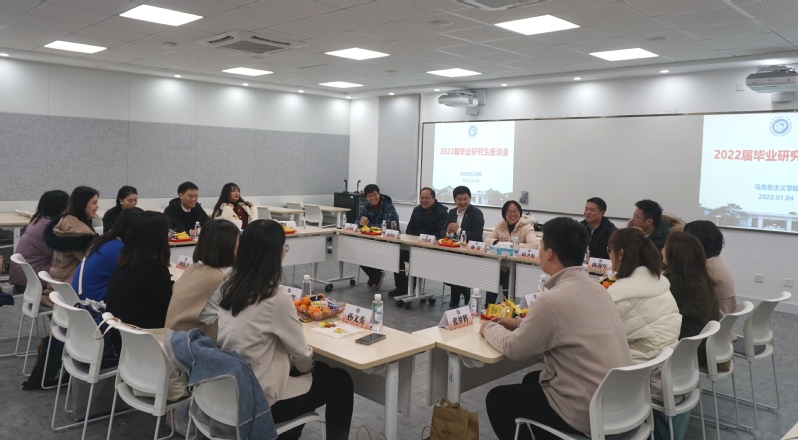 1月4日下午,世界杯体育官方网站2022届毕业研究生座谈会在学院101室举行。学院党委书记、院长王爱祥,党委副书记杨倩,副院长徐国民、邱卫东、汪斌锋,导师代表陈迎年,辅导员宋菁与2022届毕业研究生欢聚一堂,共话离别。座谈会由杨倩主持。