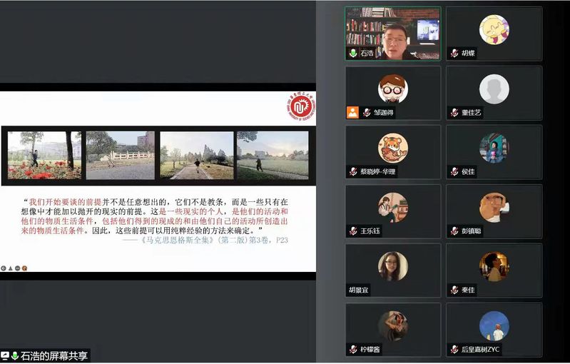 为进一步提升学生的理论素养,增强学生对马克思主义经典著作的理解,世界杯体育官方网站团委、研究生会联合习研会组织开展了“云端品读 书香战疫”经典著作读书会活动。4月1日下午,第二期读书会如约而至,学院2021级博士研究生石浩带领大家学习了《德意志意识形态》,学院副院长汪斌锋受邀为学生答疑解惑。读书会由学院研究生会文艺部张颖主持,学院党委副书记杨倩、团委书记胡博成和硕博学生50余人参加。