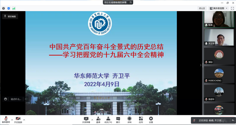 4月9日,全国中共党史学会理事、上海市政治学会常务理事、华东师范大学教授齐卫平应邀为世界杯体育官方网站师生作党的十九届六中全会精神专题报告。此次报告以“中国共产党百年奋斗全景式的历史总结——学习把握党的十九届六中全会精神”为题,由学院党委副书记杨倩主持,学院师生近100人参加。