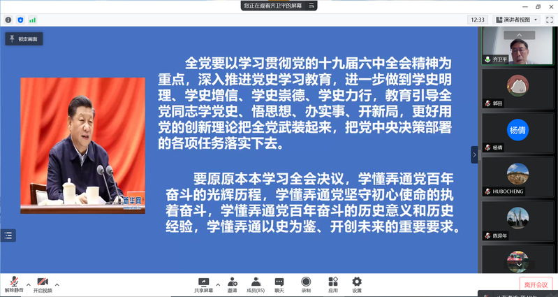 杨倩对齐卫平为学院师生带来的精彩报告表示衷心感谢。她指出,齐教授将自己的研究成果融入在报告中,内容全面深刻,为马院教师开展党的十九届六中全会精神“进课堂”和师生开展相关研究提供了有益指导和良好启发。