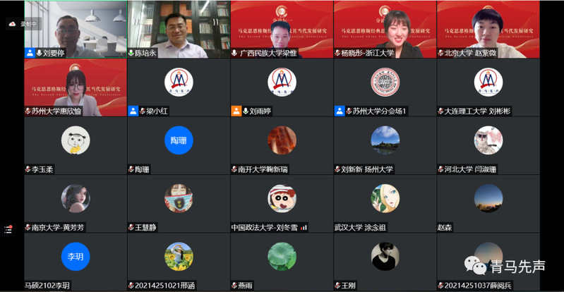 第二届“中国青年马克思主义大会”在苏州大学世界杯体育官方网站等各主办、协办单位及“青马先声”等的筹办下取得圆满成功,来自全国高校、党政军企等科研院所的35位全国知名专家学者、200余位青年学者受邀参会,围绕大会主题作主旨报告,共探学术前沿、共议学科发展。1个主会场、6场分论坛同时进行,线上直播累计55.8万人观看,实时在线超4.3万人次在线观看。大会有力推动了对马克思主义经典文献和21世纪马克思主义前沿问题的研究,加强了全国马克思主义理论学科老中青年学者之间的理论交流、促进了马克思主义学科青年发展成长,为国内马克思主义理论研究者带来了一场理论水平高、政治站位高、专家阵容强大、学术含量高、衔接紧凑的饕餮学术盛宴,赢得了受邀专家学者和线上听众的广泛好评。田鹏颖教授认为“第一届、第二届中国青年马克思主义大会名家荟萃、少长咸集、精英辈出、青年主打,展现了我们中国青年马克思主义大会的宗旨,充分体现了中国青年马克思主义大会理论研究高端、学术思想高端、务实学风高端的特点”。他表示,作为第三届中国青年马克思主义大会的承办方,东北大学世界杯体育官方网站将同山东师范大学世界杯体育官方网站、苏州大学世界杯体育官方网站等共同努力,把会议越办越好。