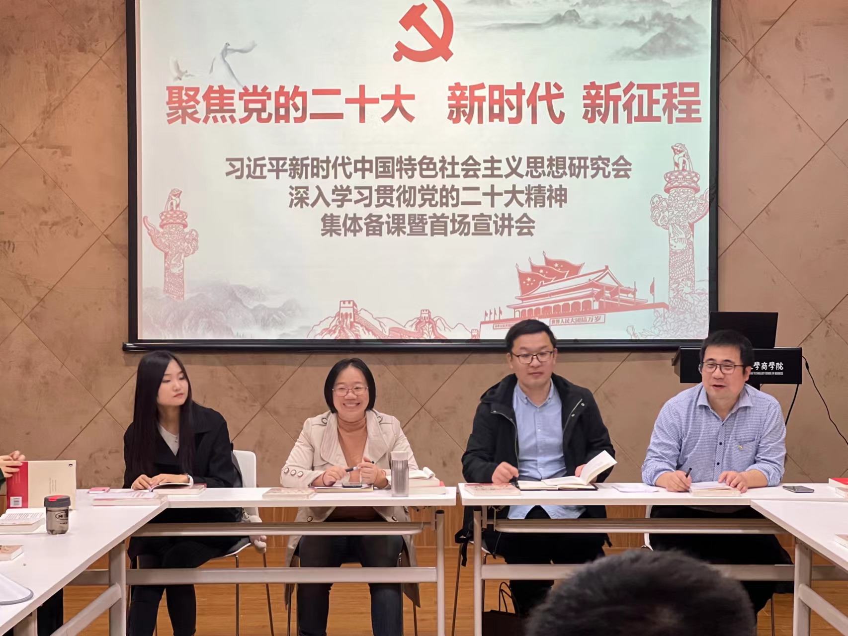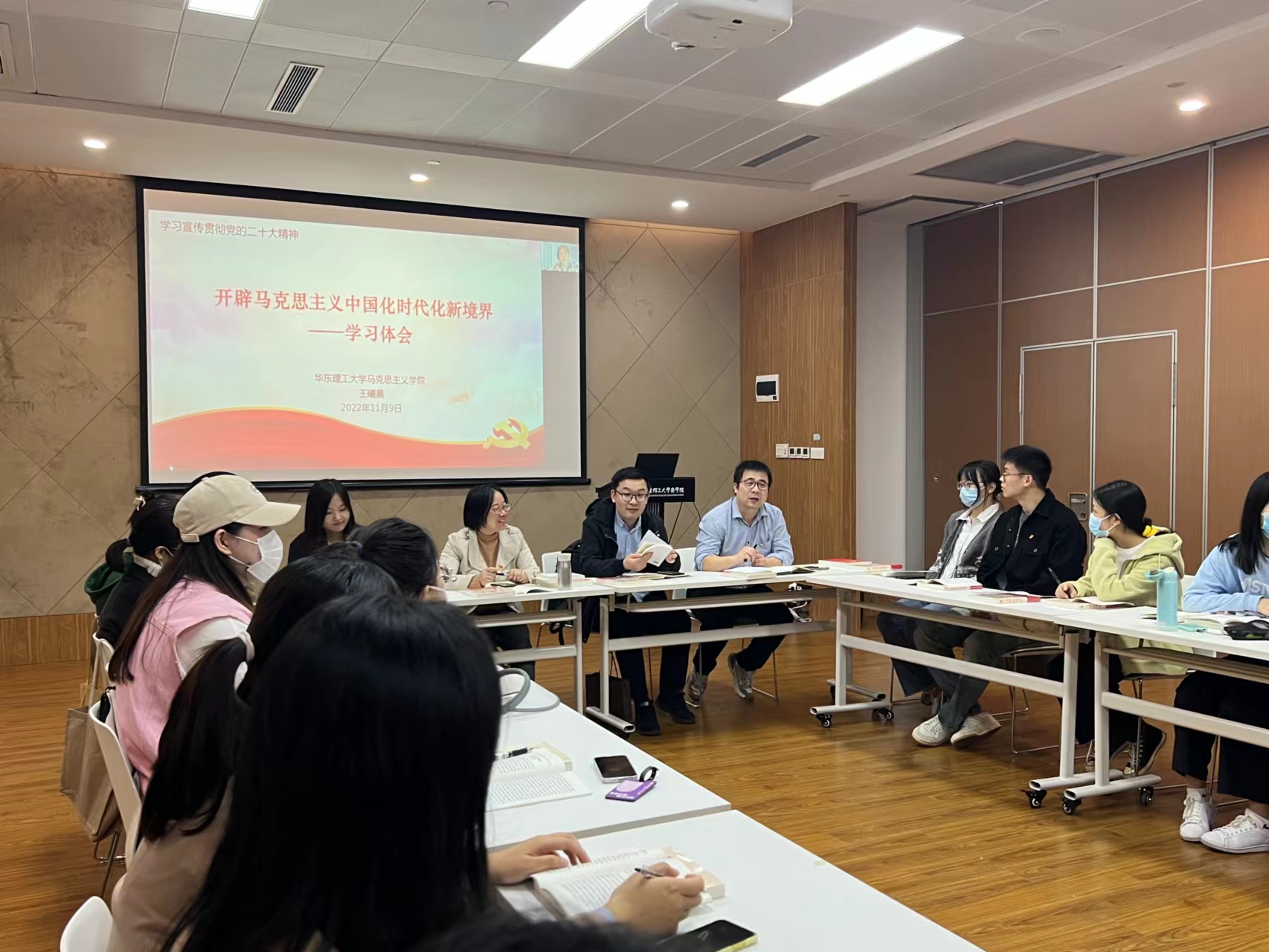 为深入学习宣传贯彻党的二十大精神,11月9日下午,学院徐汇校区研究生党支部与校习研会合作开展了主题为“聚焦党的二十大 新时代 新征程”党的二十大精神学习专题组织生活会。校党委研工部戎思淼,学院党委副书记杨倩、团委书记胡博成、徐汇校区研究生党支部全体党员共同参加。