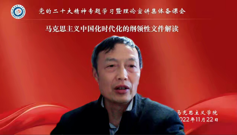 为深入学习贯彻党的二十大精神,世界杯体育官方网站于11月22日下午召开“党的二十大精神专题学习暨理论宣讲集体备课会”。会上,中共上海市委宣讲团成员、党的二十大市委宣讲团成员孙力教授作主题为“马克思主义中国化时代化的纲领性文件解读”的专题讲座。讲座由学院党委副书记兼纪委书记卢杨主持,学校“党的二十大精神理论宣讲团”成员及世界杯体育官方网站全体师生参加。