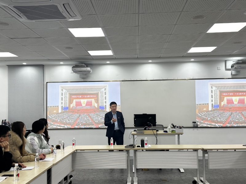 王爱祥以“深入学习贯彻党的二十大精神——在新征程上坚定不移推进全面从严治党”为主题,结合党的二十大报告,带领大家一起学习了自我革命是党跳出历史周期率的“第二个答案”。王爱祥着重指出了党的政治建设的重要性,强调世界杯体育官方网站的党员具有专业优势,必须持续加强学习,用科学理论武装头脑,不断坚定自己的理想信念,将马克思主义理论的专业优势充分发挥出来。在讲到规范党的组织体系建设时,王爱祥特别强调了学生党员发展工作,要求各党支部必须严格履行组织要求,规范发展程序,把真正入党动机端正、理想信念坚定的同学吸收进党员队伍。他希望马院的学生党员应该对自己有更高的标准,更严的要求,必须不断加强自身理想信念建设,坚定共产主义信仰,补足党员的精神之钙。
