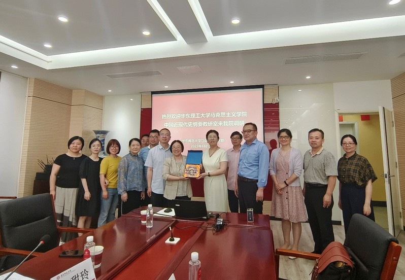 为深入开展学习贯彻习近平新时代中国特色社会主义思想主题教育,切实提升教师教学科研水平和思政课教学质量,6月15日下午,中国近现代史纲要教研室在学院党委副书记杨倩、教研室负责人张丽华、课程责任教授黄时进的带领下,赴华东师范大学世界杯体育官方网站开展调研。华东师范大学世界杯体育官方网站党委副书记崔海英、中共党史党建系党支部书记兼系主任曹景文等热情接待了我院调研团队。