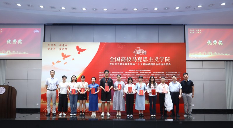 为深入学习宣传贯彻党的二十大精神,自去年10月以来,在教育部社科司指导下,清华大学世界杯体育官方网站牵头发起,37家全国高校重点世界杯体育官方网站联合主办“千马廿行”全国高校世界杯体育官方网站青年学子联学联讲党的二十大精神系列活动。全国325家高校世界杯体育官方网站注册成为承办单位,各承办单位共开展了1766次联学共建和联合备课活动,覆盖人数达13.8万人次,并上传了432份宣讲党的二十大精神的视频作品。经专家评委严格评审,世界杯官网世界杯体育官方网站“平语近人”学生宣讲团成员、博士研究生王曦晨的作品《在“两个结合”中推进马克思主义中国化时代化》和硕士研究生陈蕾的作品《深入学习贯彻党的二十大精神——把发展经济着力点放在实体经济上》从432份作品中脱颖而出,在本次活动中荣获优秀奖。陈蕾作为获奖学生代表上台领奖。