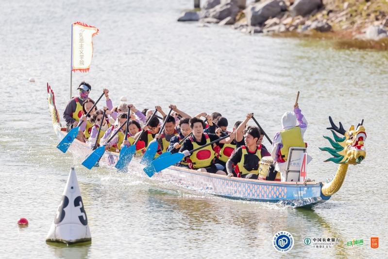 下午,学院党委书记、院长王爱祥来到比赛现场,为学院参赛队伍加油鼓劲。随着发令声响,学院全体参赛队员齐心协力挥动手中的木浆,龙舟如离弦之箭在水面上跃进。他们奋力拼搏,挥桨斩浪,百舸争流,乘风破浪!
