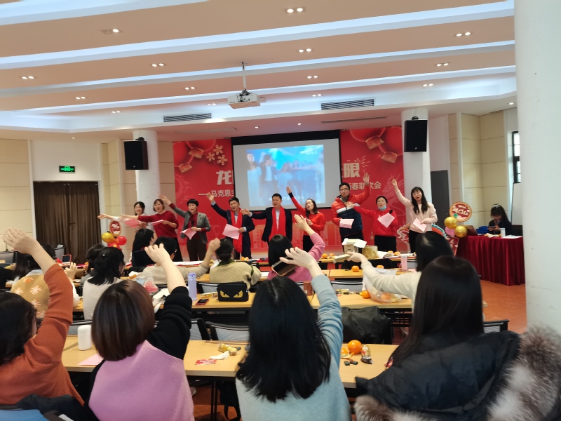 学院党委副书记杨倩演唱的《说唱脸谱》拉开了新春联欢会的帷幕,瞬间点燃了现场气氛。各教研室的老师们纷纷上台表演节目,展示才艺。思想道德与法治教研室的王瑞超给大家演唱了歌曲《如愿》,甜美温婉的歌声让老师们如痴如醉。毛泽东思想和中国特色社会主义理论体系概论教研室的王曦晨带来歌曲《不要犹豫》,让人感受到了积极向上的力量。习近平新时代中国特色社会主义思想概论教研室的老师们带领大家表演舞蹈《兔子舞》,整个会场宛如欢乐的海洋。由马克思主义基本原理教研室带来的情景短剧《断桥相遇》和歌曲《千年等一回》,让老师们又重温了许仙和白娘子的故事。中国近现代史纲要教研室的老师演唱了歌曲《童话镇》,带领老师们走进了童话的世界。习近平新时代中国特色社会主义思想概论教研室演唱的歌曲《相亲相爱一家人》,将联欢会带入了一个小高潮。学院党政工领导班子慷慨激昂朗诵诗歌《中华颂》,让全体老师再一次感受到了作为中华儿女的骄傲与自豪。学院行政办公室老师高歌《明天会更好》,唱出了马院人对未来的憧憬和希望。节目表演过程中还穿插了“你说我猜”、“抢凳子”等游戏,老师们全身心地投入其中,整个会场洋溢着欢声笑语。