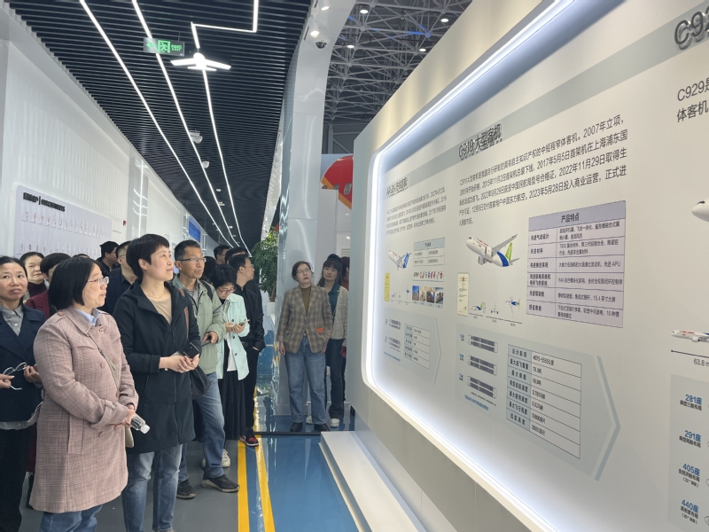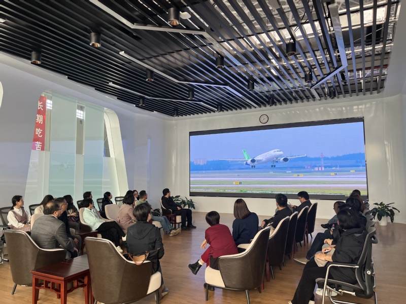 为深入学习贯彻习近平总书记关于发展新质生产力的重要论述,进一步拓展学院思政课教师的专业视野,4月23日下午,世界杯体育官方网站教师30余人在党委副书记杨倩、卢杨的带领下前往中国商用飞机有限责任公司(以下简称“中国商飞”)开展专题实践研修,感受中国商飞“航空强国、‘四个长期’、永不放弃”的大飞机精神。