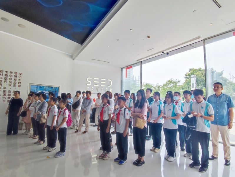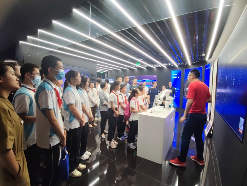 在张江科学城人工智能岛,师生通过观看宣传短片,了解了张江科学城的建设发展历程、人才队伍现状以及最新科研成果等方面情况。在“百度飞桨”人工智能产业赋能中心,工作人员为师生们详细讲解了人工智能相关技术及应用,涉及人工智能的发展历程、飞浆及文心大模型大事记、飞浆产业级深度学习开源开放平台、人工智能运用发展领域等方面,深入浅出地为大中小学师生普及新一代人工智能技术。