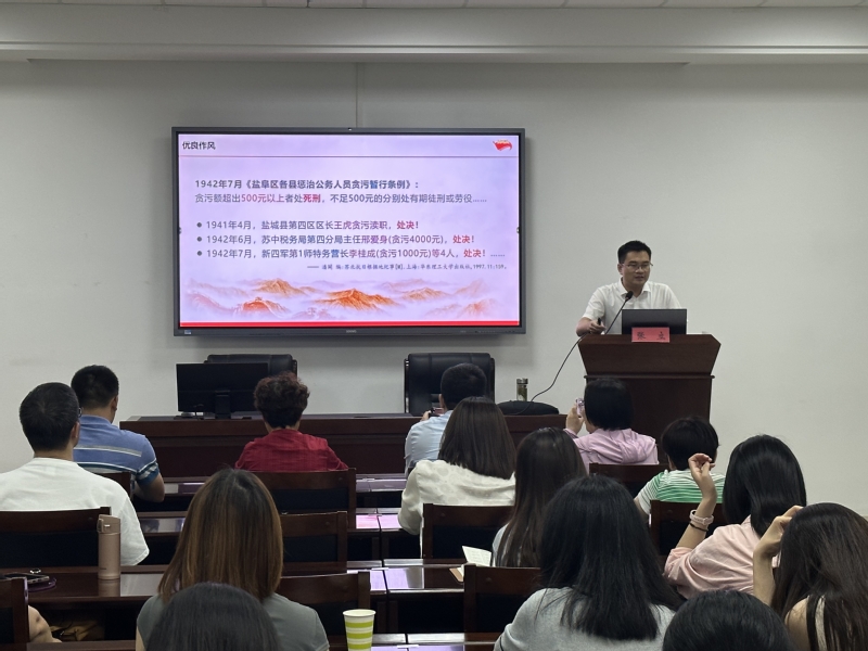 中共盐城市委党校宣教室副主任张立从“生动教材:新四军赢得民心的实践与经验、理论意涵和时代考题”三个方面给大家上了一堂内容丰富的党课。通过党课学习,大家更加深刻地领悟了习近平总书记“民心向背决定着历史的选择”这一重要论断。