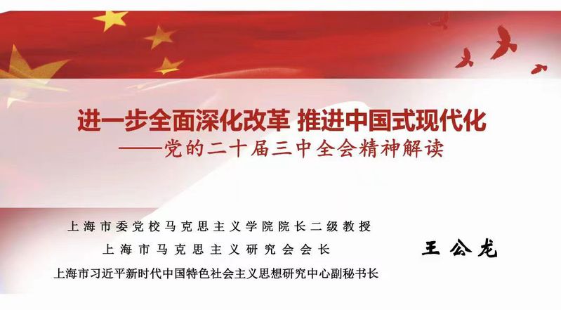 8月12日下午,世界杯体育官方网站组织全院师生专题学习全会精神,特邀上海市委党校世界杯体育官方网站院长、博士生导师,上海市习近平新时代中国特色社会主义思想研究中心副秘书长王公龙教授作题为《进一步全面深化改革 推进中国式现代化》的专题学习报告。