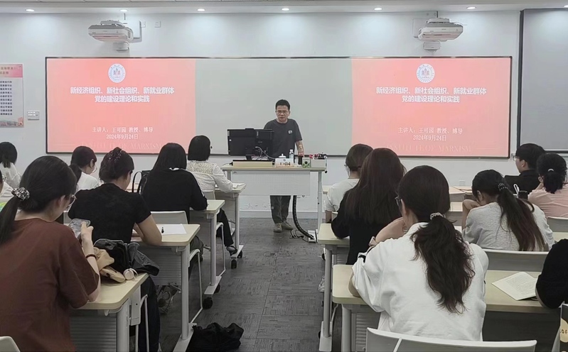 王可园就“如何加强新经济组织、新社会组织、新就业群体党的建设”展开深入探讨。他指出,从党的二十大第一次提出“三新”概念到党的二十届三中全会再次强调探索加强“三新”党的建设有效途径,这体现了党对经济社会变化的深刻把握以及对新时代党建工作的高度重视。他阐述了“两企三新”党建领导工作的演进逻辑和实践路径,详细解释了“新经济组织”“新社会组织”“新就业群体”三大概念的内涵,带领同学们回顾了目前城市治理中党的建设的主要模式。他还举例分析了快递小哥、外卖员、网约车司机等独特新就业群体的工作生活方式特点,剖析在平台经济兴起、社会组织形态变革过程中党建工作面临的新问题和新挑战,指出当前基层党建模式创新的特点为更好把握新时代基层党建工作新方法提供了一定参考。