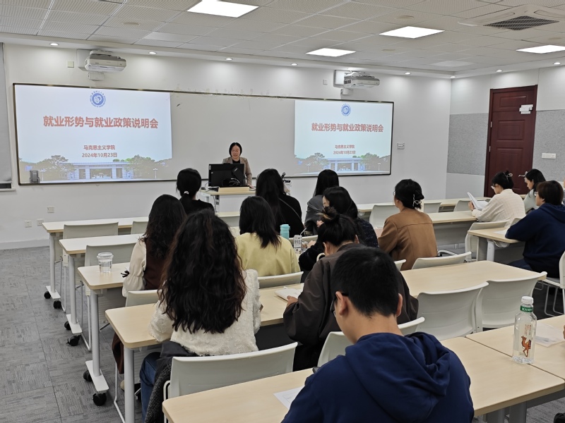 杨倩介绍了近年来我国大学生的总体就业形势,用详细的数据分析了学院近三年毕业生的总体就业情况和具体就业去向。同时,她还对毕业生关心的各种就业形式、三方协议签订、档案户口迁移等问题进行了详细说明。针对马院硕士生2.5年学制的特点,她希望同学们能够处理好毕业和就业的关系,充分利用求职高峰期去积极进行各种尝试,进一步降低就业预期,转变就业观念。