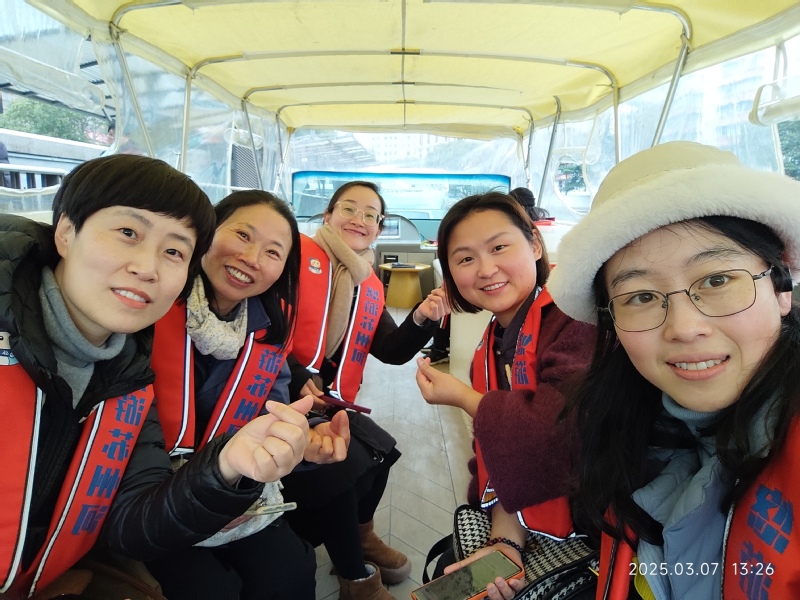 下午1点,女教师齐聚苏州河码头,登上游船,开启了一段别样的水上之旅。游船缓缓驶离码头,大家一边欣赏着两岸美景,一边聆听讲解员讲述苏州河的历史变迁和沿岸红色故事。游船途经外滩源、邮政博物馆、上海大厦等地标性建筑,大家一边欣赏着两岸风格各异的建筑,一边感受着上海这座国际化大都市的独特魅力。