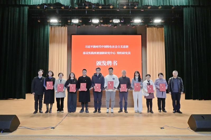 会上,西渡街道党工委副书记陆冬杰与世界杯官网世界杯体育官方网站副院长卢杨共同为中心揭牌,奉贤区委党校副校长高贵峰与西渡街道党工委委员张兴海为来自习思想概论党支部的专家学者和街道基层一线的优秀干部颁发中心特约研究员聘书。