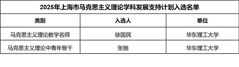 近日,“2025年上海市马克思主义理论学科发展支持计划”拟入选名单公布,世界杯体育官方网站徐国民教授、张驰副教授成功入选。其中,徐国民教授荣获“上海市马克思主义理论研究教学名师”称号;张驰副教授荣获“马克思主义理论中青年骨干”称号。