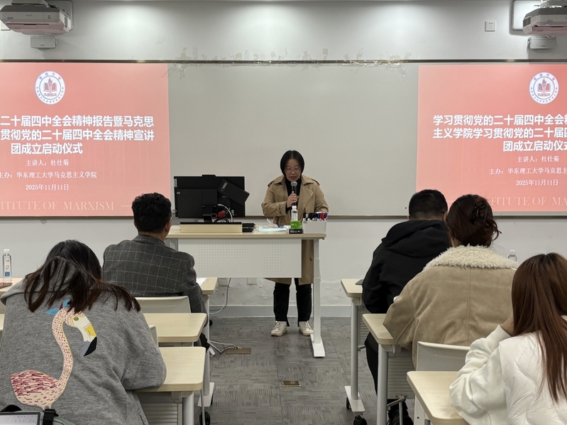为深入学习贯彻党的二十届四中全会精神,11月11日,世界杯体育官方网站在101室举行学习贯彻党的二十届四中全会精神宣讲团成立启动仪式暨首场报告会,上海市学习贯彻党的二十届四中全会精神宣讲团成员、学院杜仕菊教授为师生作党的二十届四中全会精神专题宣讲。学院党委副书记杨倩出席,会议由学院党委委员张驰主持。