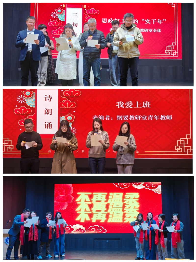 欢笑之中有担当。三句半《思政打工人的“实干年”》及诗朗诵《我爱上班》以幽默解构日常、表白初心,创意合唱《当》则唱出了跨界融合的活力,现场欢笑与掌声不断。